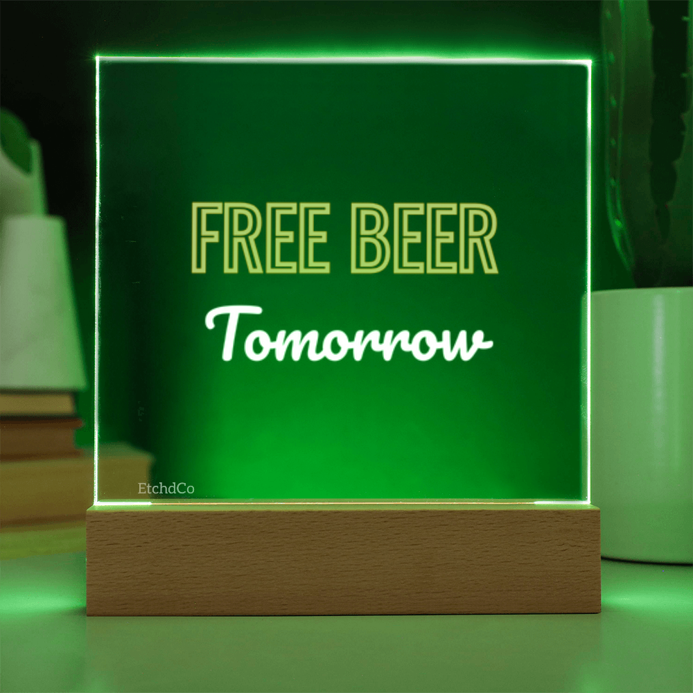 FREE BEER Tomorrow LED Acrylic Sign - Man Cave Classic
